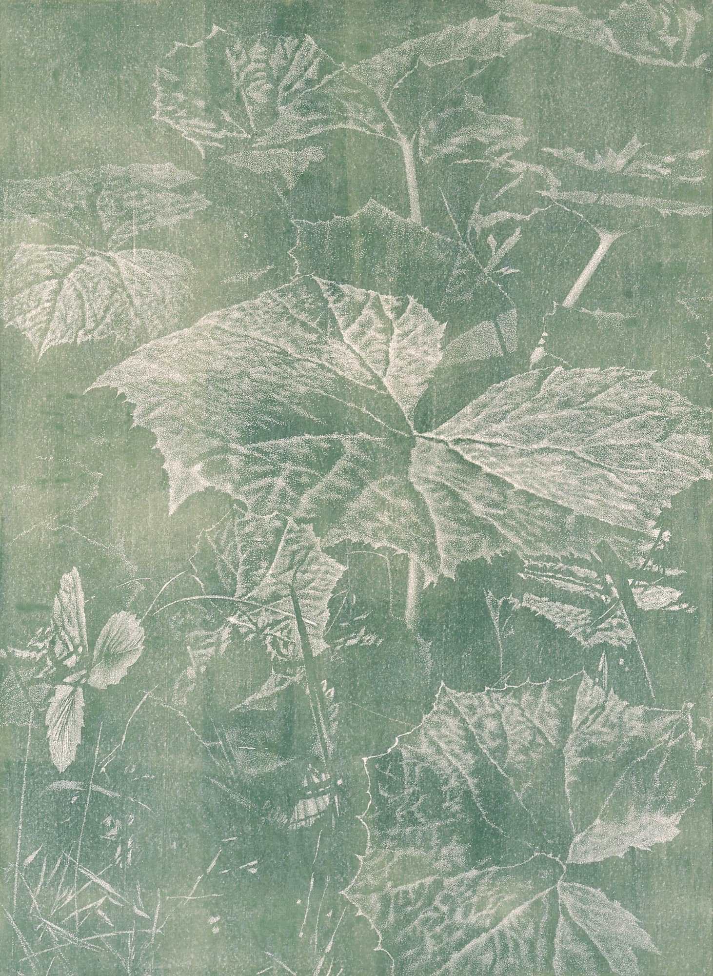 Gemälde "Waldweg (Campiglia Marittima)" (2013/14) und "Pestwurz" (2014/15) - 2016–17Holzschnitte "Winter" (2016), "Sommer" (2017), "Maria II" (2017)